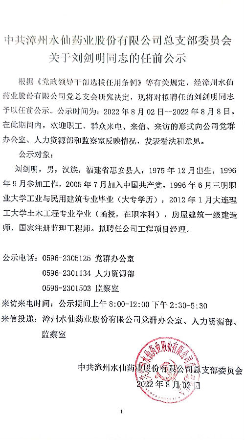 關于劉劍明同志的任前公示